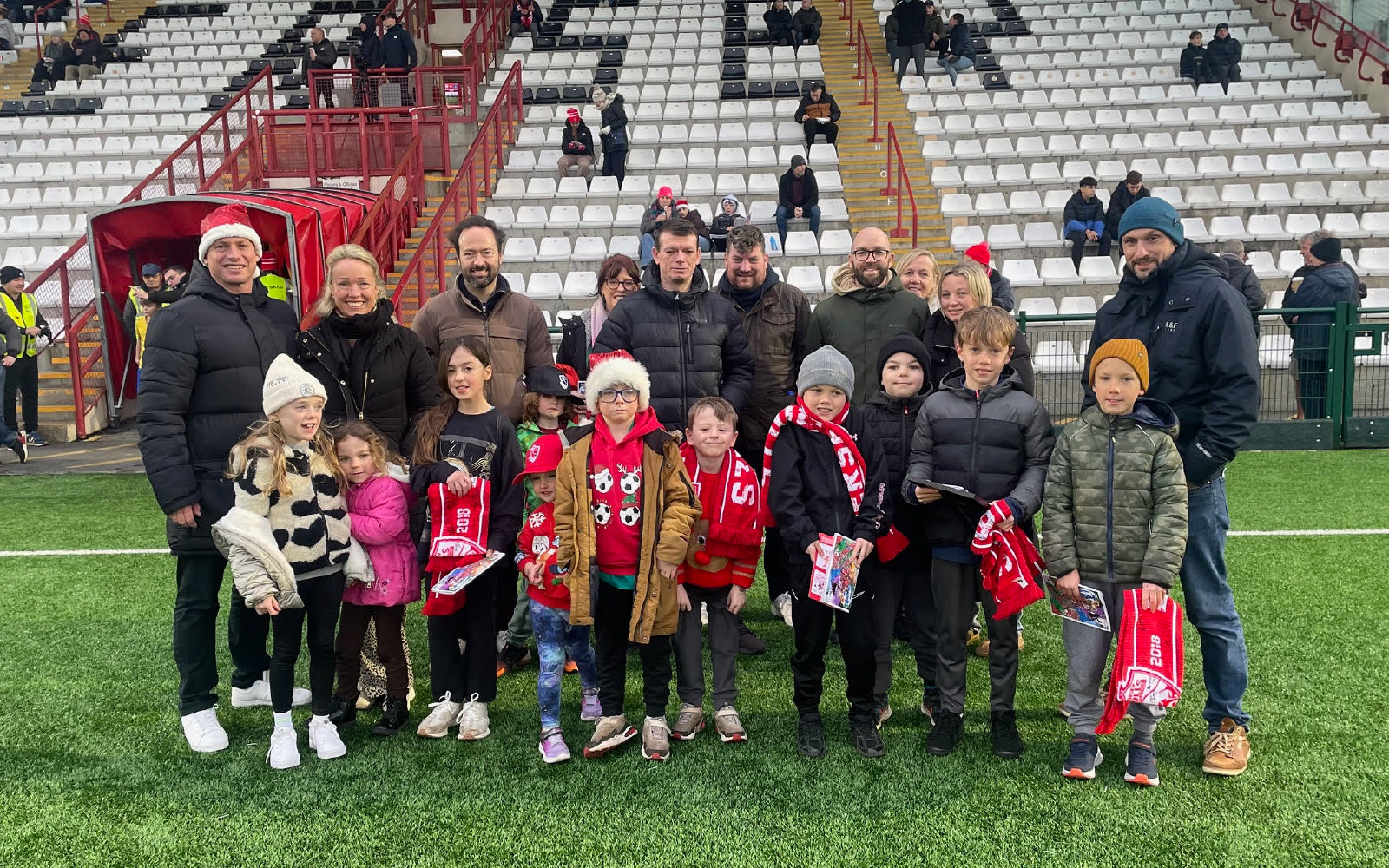 Christie received match tickets, a framed copy of their design, a match programme and a signed Bulls scarf. The others received a programme plus a Bulls scarf.