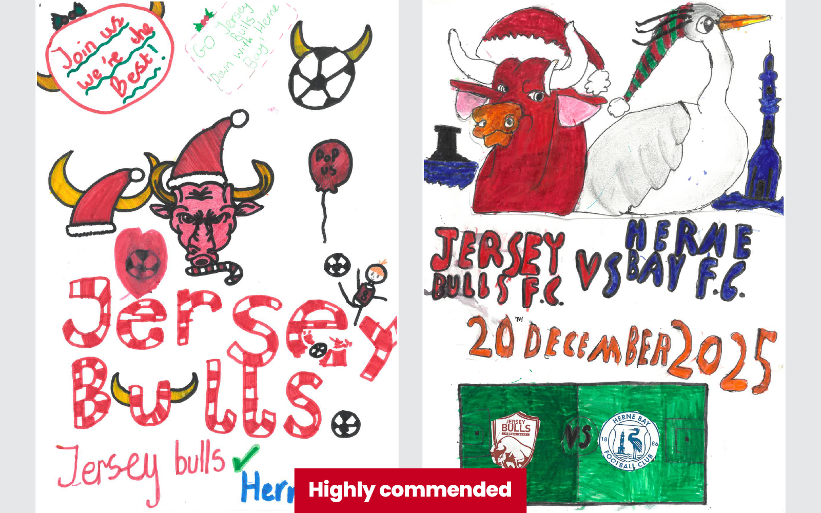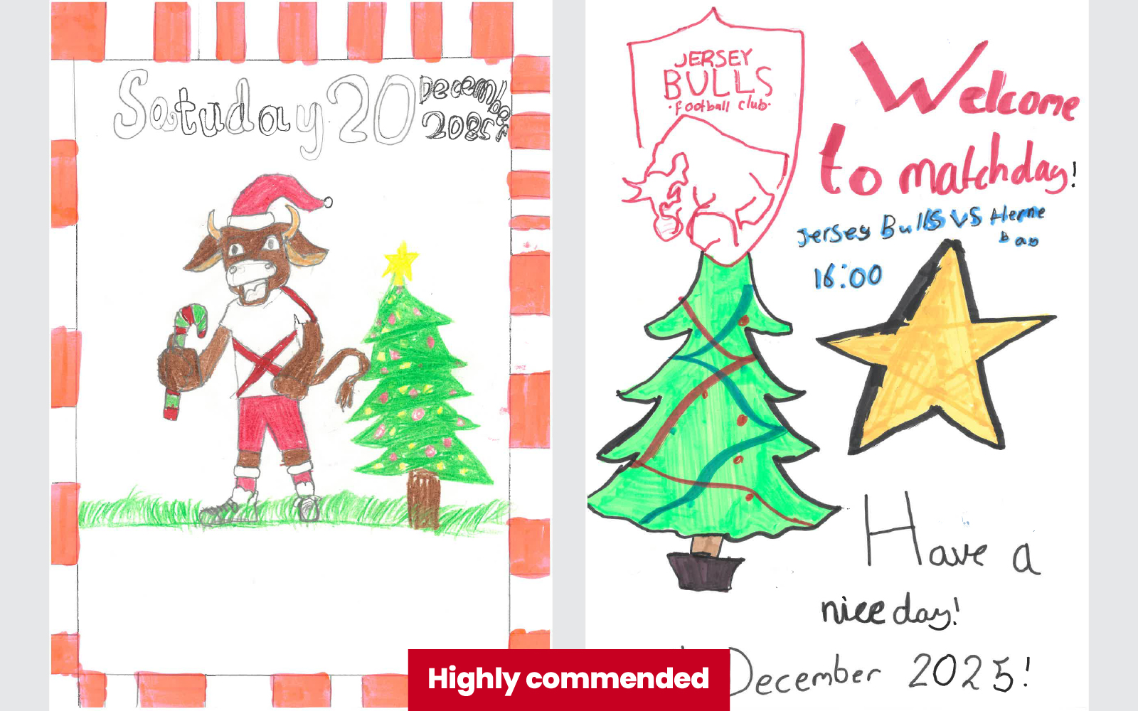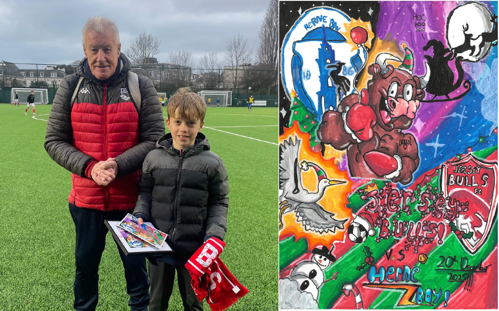 Christie’s colourful masterpiece was selected as the winner of the design-a-matchday-programme competition, and it was used for the cover of the programme for Bulls’ game against Herne Bay last weekend (Dec 20 2025).